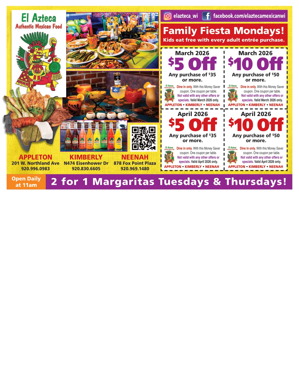 2 for 1 Margaritas Tuesdays & Thursdays!