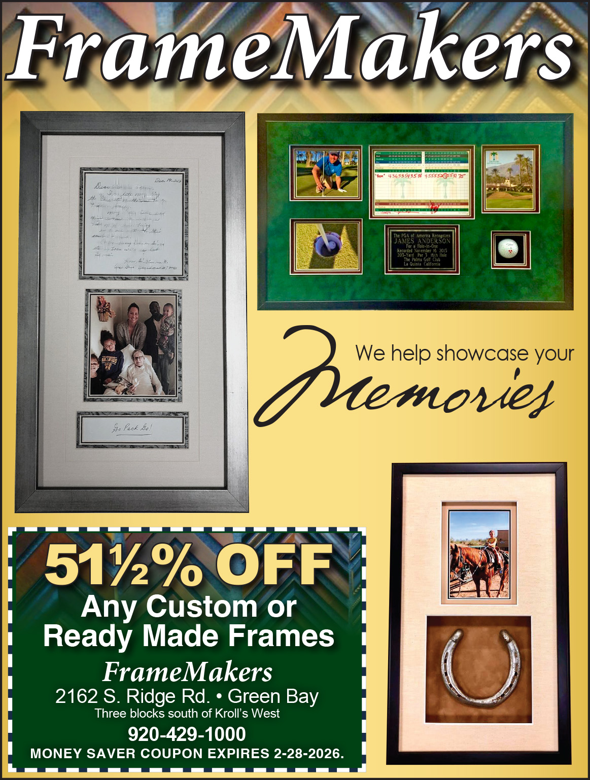 51 1/2% Off Any Custom Ready Made Frames