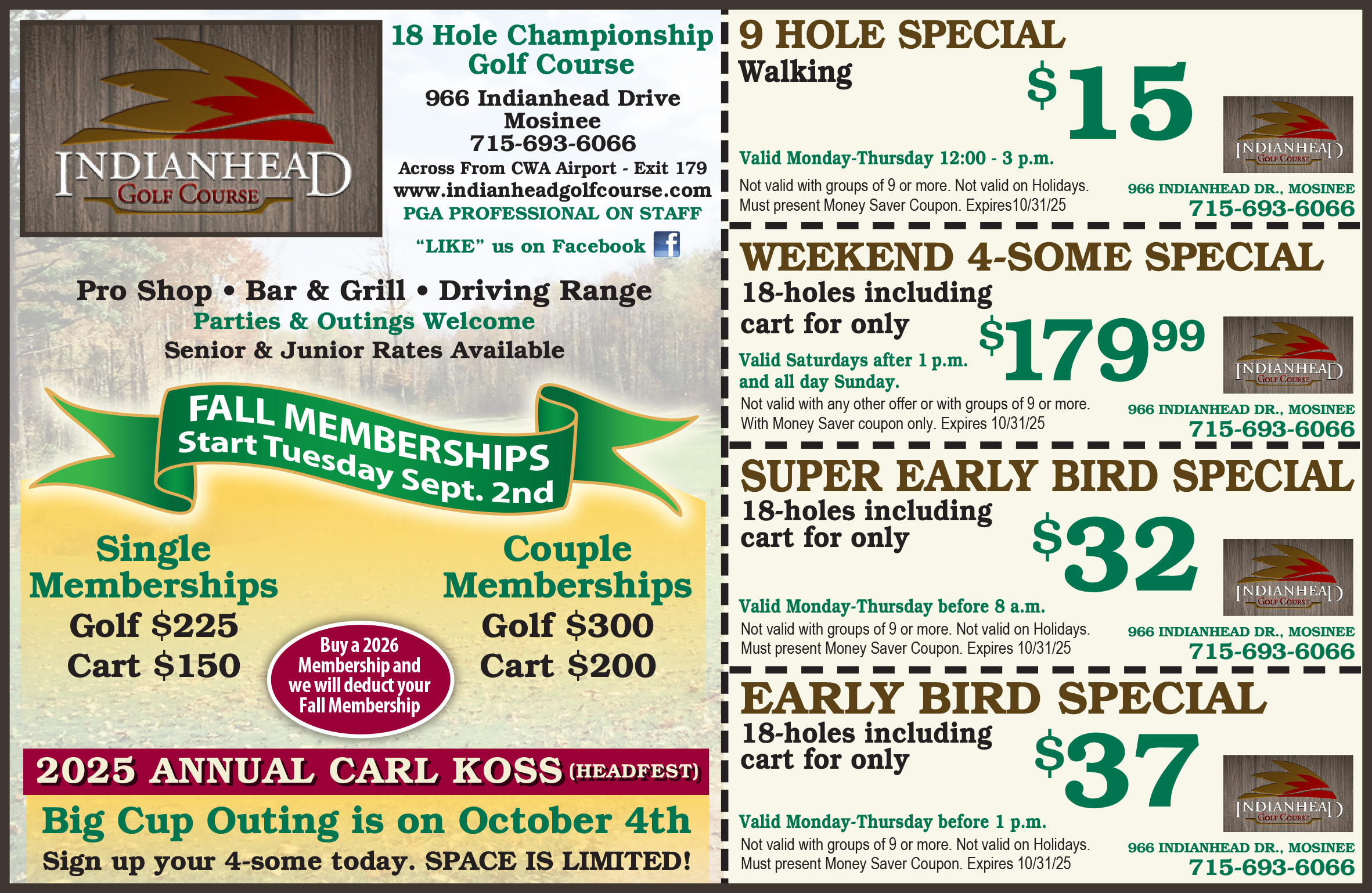 9 Hole Walking $15
