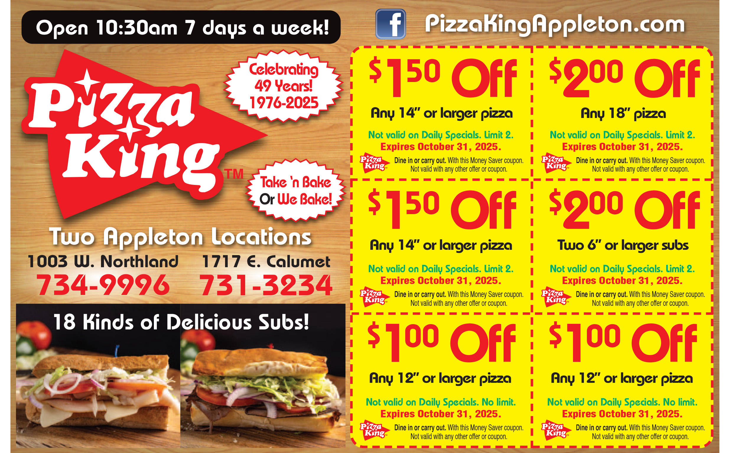 $1.50 Off Any 14" or Larger Pizza