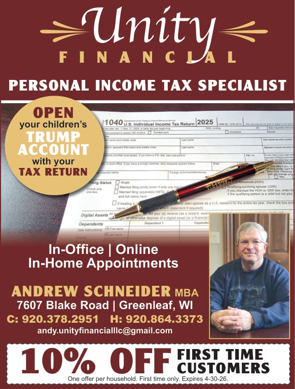 Personal income tax specialist offering in-office, online, and in-home appointments for tax preparation services, including opening Trump accounts for children.